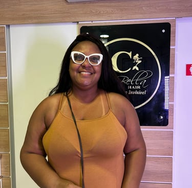 A Priscylla vem de Brás de Pina e ficou impressionada com o acabamento da Crisbella Hair.